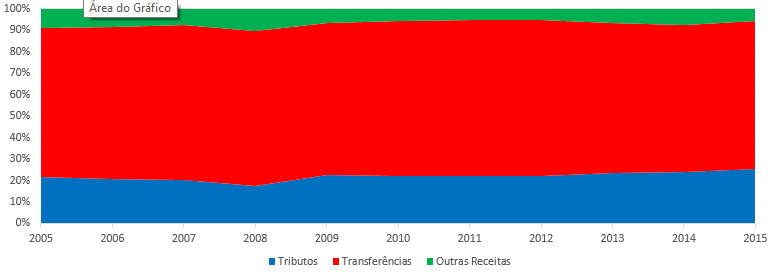 Diante disto, toda forma de miopia quanto ao custo do governo, deve causar uma miopia quanto a sua capacidade de provisionar bens e serviços públicos, penalizando, em última instância, os usuários do serviço de educação, saúde, a infraestrutura da cidade. Em Uberlândia esta capacidade de avaliação é reduzida pela baixa participação das receitas próprias no total do orçamento, próxima a 20% das receitas, potencializando a ilusão fiscal e causando na população a percepção de que os custos do governo são menores do que eles realmente são. O Gráfico 2 constata este fato.